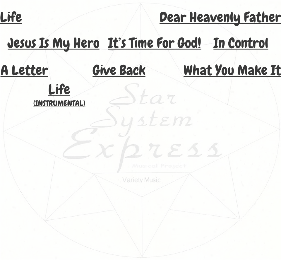 Home of the Star System Express History of SSE Mission Why? Who is SSE Recordings Life